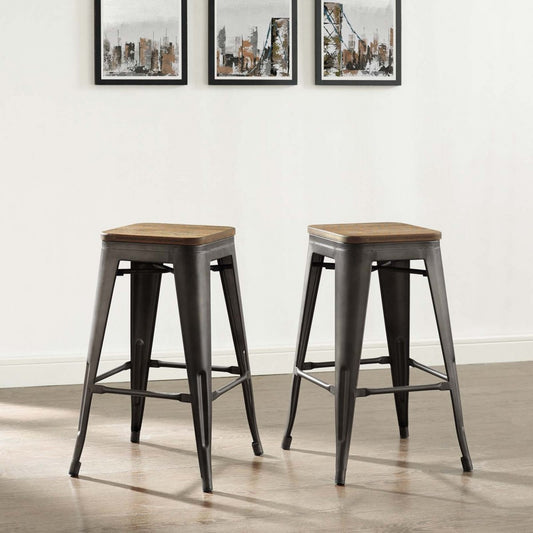 Promenade Bar Stool Set of 2, Gunmetal, EEI-3954-GME