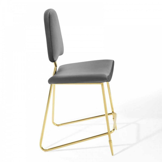 Privy Gold Stainless Steel Performance Velvet Counter Stool, Gold Charcoal