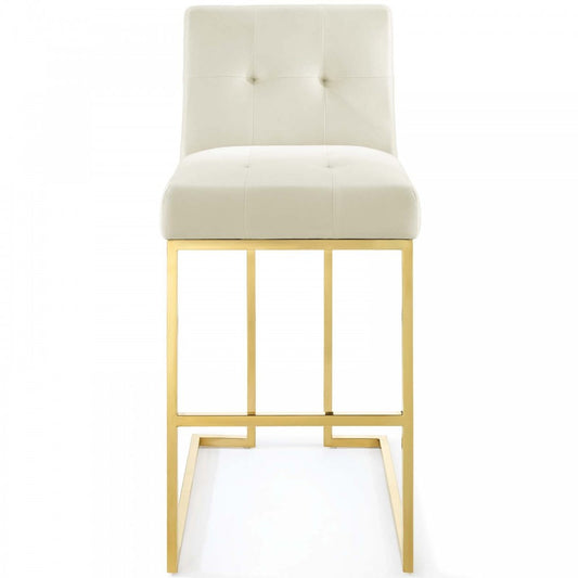 Privy Gold Stainless Steel Performance Velvet Bar Stool, Gold Ivory
