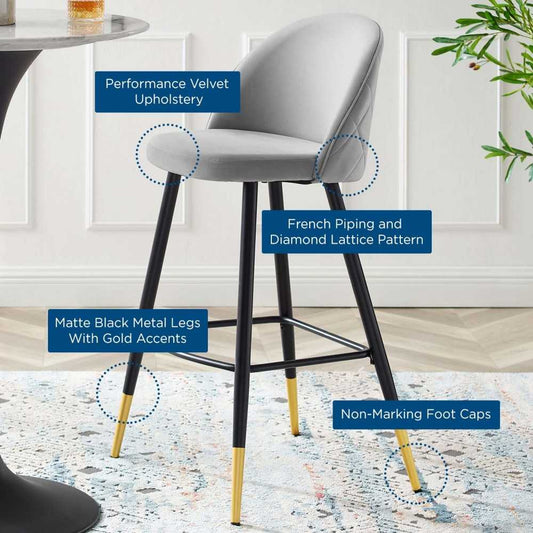 Adorn Performance Velvet Bar Stool Set of 2, Light Gray