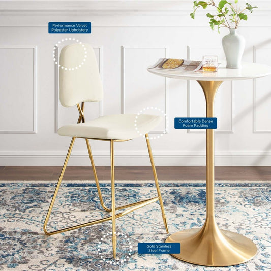 Ponder Counter Stool Performance Velvet Set of 2, Ivory