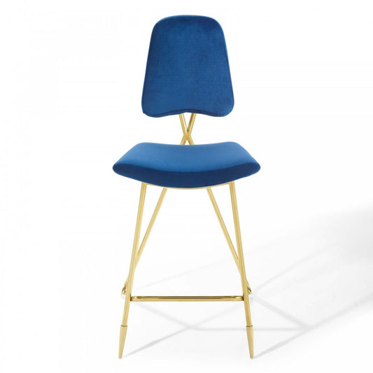 Ponder Counter Stool Performance Velvet Set of 2, Navy
