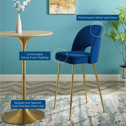 Rouse Performance Velvet Bar Stool, Navy, EEI-4642-NAV