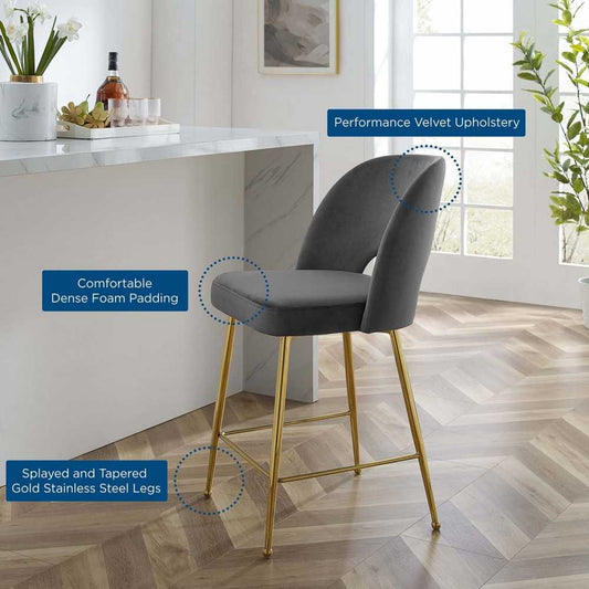 Rouse Performance Velvet Counter Stool, Charcoal, EEI-4641-CHA