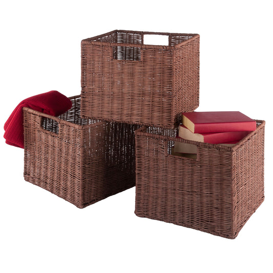 Leo 3-Pc Wicker Basket Set, Walnut Rattan