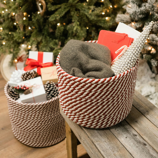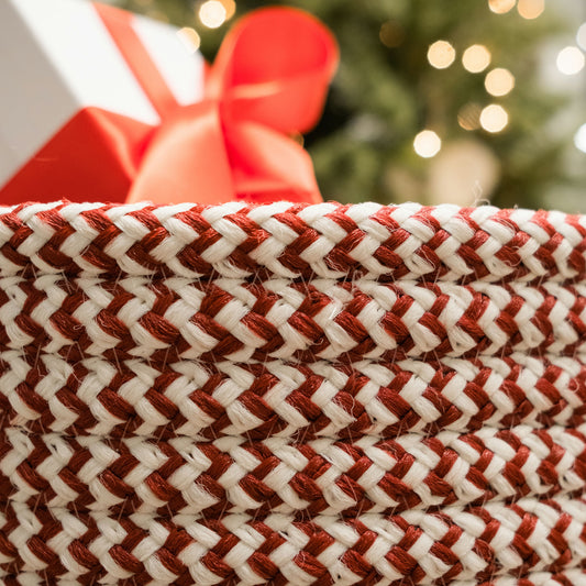Twisted Christmas Woven Basket - Red/White 12"x12"x10"