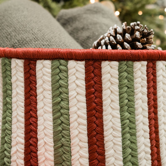 Comet Stripe Christmas Basket - Green Multi 12"x12"x8"