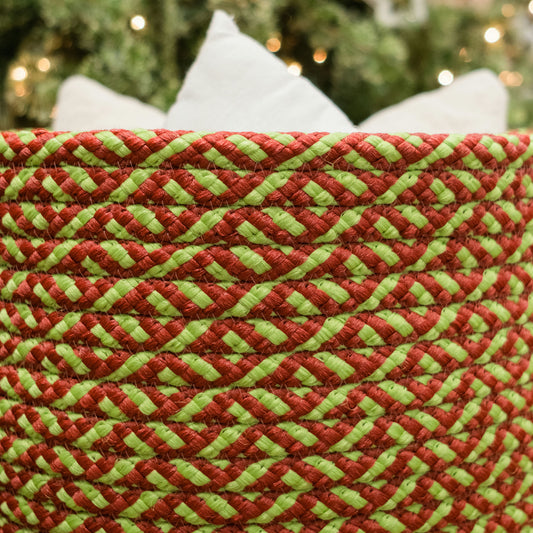 Holiday-Vibes Modern Weave Basket - Vibe Green/Red 12"x12"x10"