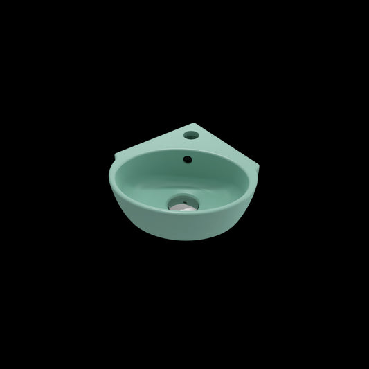 Milano Corner Sink Fireclay 12 in. 1-Hole with Overflow in Matte Mint Green