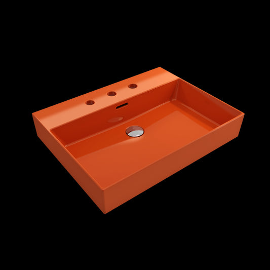 Milano Wall-Mounted Sink Fireclay 24 in. 3-Hole with Overflow in Orange