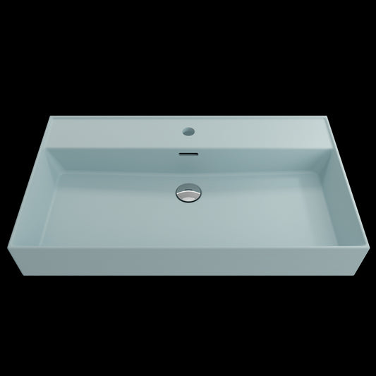 Milano Wall-Mounted Sink Fireclay 32 in. 1-Hole with Overflow in Matte Ice Blue