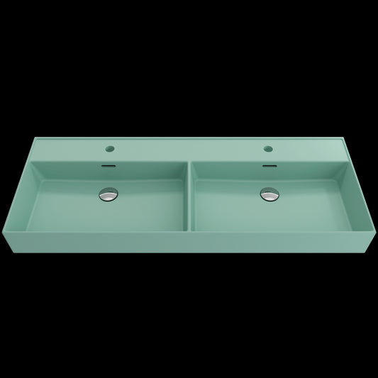 Milano Wall-Mounted Sink Fireclay 47.75 in. Double Bowl in Matte Mint Green