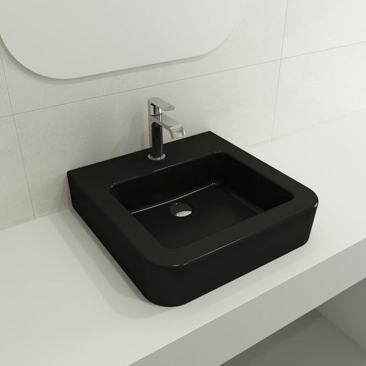 Parma Wall-Mounted Sink Fireclay 19.75 in. 1-Hole with Overflow in Matte Black