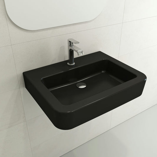Parma Wall-Mounted Sink Fireclay 25.5 in. 1-Hole with Overflow in Matte Black