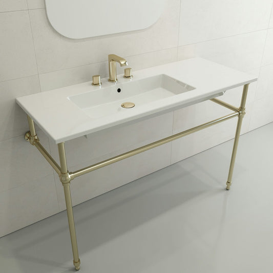 Ravenna Wall-Mounted Sink Fireclay 47.5 in. 3-Hole with Overflow in White
