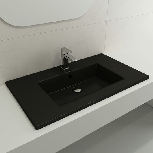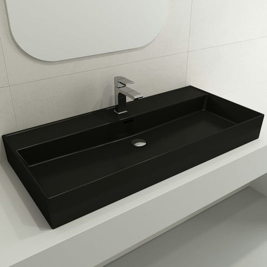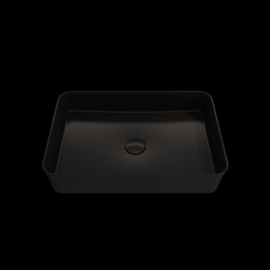 Sottile Rectangle Vessel Fireclay 21.5 in. with Drain Cover in Matte Black