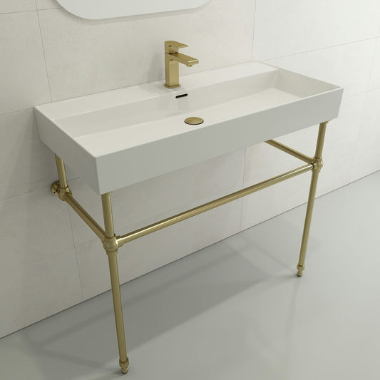 Milano Wall-Mounted Sink Fireclay 39.75 in. 1-Hole with Overflow in White