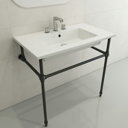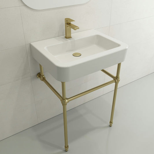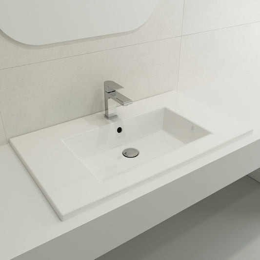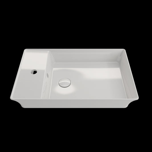 Sottile Rectangle Vessel Fireclay 23.5 in. 1-Hole Faucet Deck in White