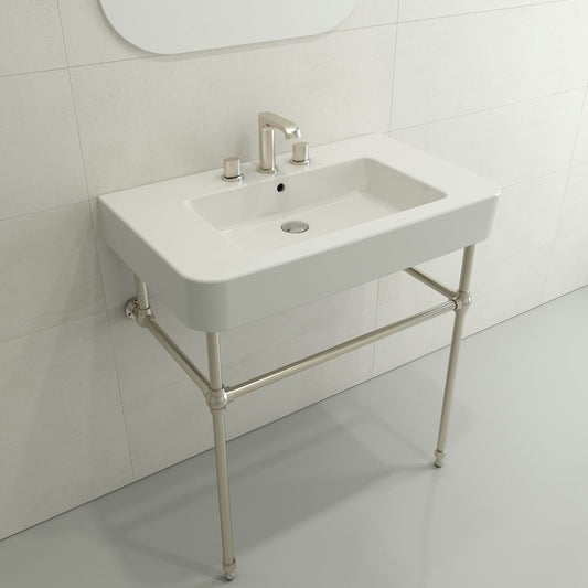 Ravenna Wall-Mounted Sink Fireclay 32.25 in. 3-Hole with Overflow in White