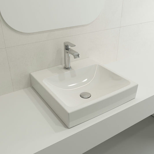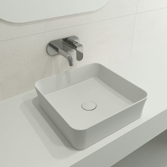 Sottile Square Vessel Fireclay 15.25 in with Matching Drain Cover in Matte White