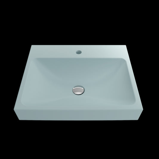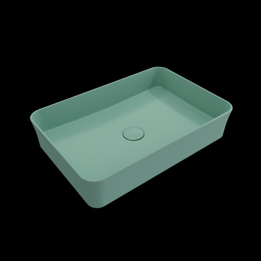 Sottile Rectangle Vessel Fireclay 21.5 in. with Drain Cover in Matte Mint Green