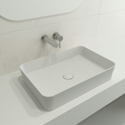 Sottile Rectangle Vessel Fireclay 21.5 in. with Drain Cover in Matte White