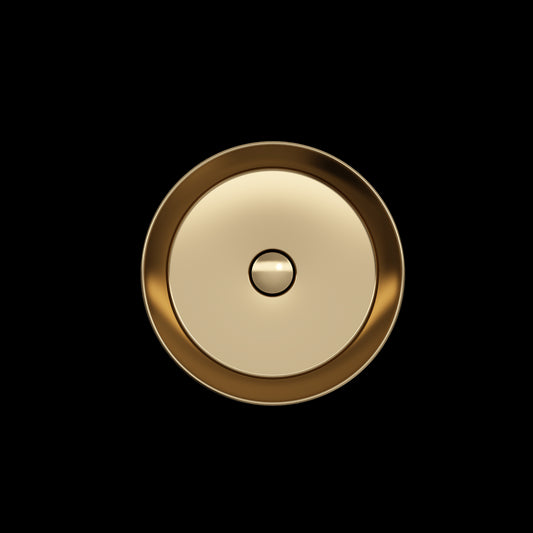 Sottile Round Vessel Fireclay 15 in. with Matching Drain Cover in Matte Gold