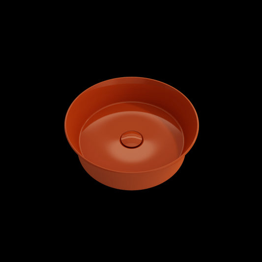 Sottile Round Vessel Fireclay 15 in. with Matching Drain Cover in Orange