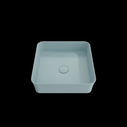 Sottile Square Vessel Fireclay 15.25 in. with Drain Cover in Matte Ice Blue