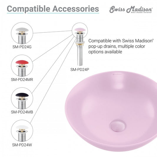 Swiss Madison Classe 16 Color Ceramic Sink in Matte Pink