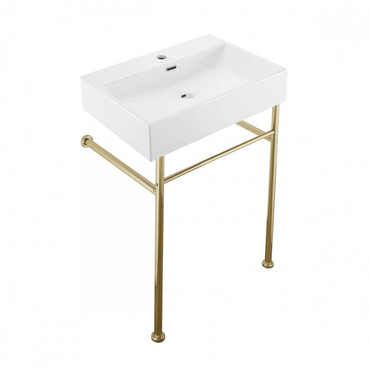 Claire 24 Ceramic Console Sink White Basin Gold Legs