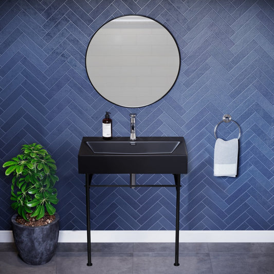 Claire 30 Ceramic Console Sink Matte Black Basin Black Legs