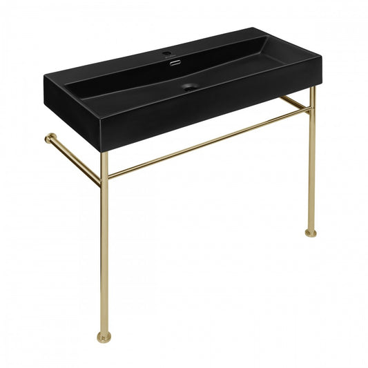 Claire 40 Ceramic Console Sink Matte Black Basin Gold Legs
