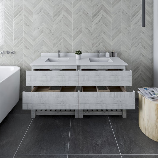 Fresca Formosa 72" Bathroom Cabinet w/ Top & Sinks in Rustic White
