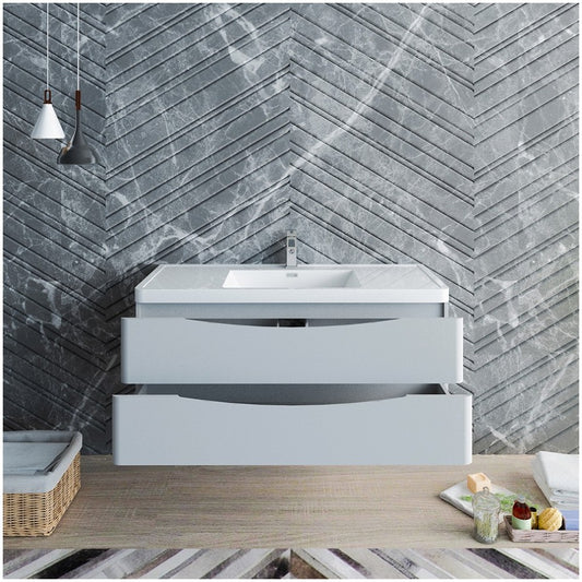 Tuscany 48" Glossy Gray Wall Hung Modern Bathroom Cabinet w/ Integrated Sink
