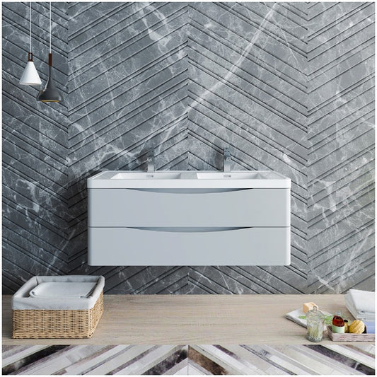 Tuscany 48" Glossy White Wall Hung Modern Bathroom Cabinet w/ Integrated Sink
