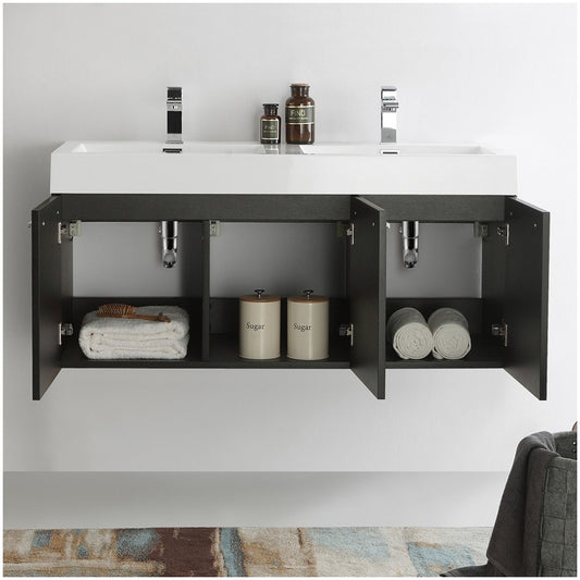 Tuscany 48 Gray Wall Hung Modern Bathroom Cabinet w/ Integrated Double Sink