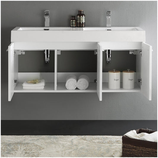 Vista 48" White Wall Hung Double Sink Modern Bathroom Cabinet w/ Integrated Sink