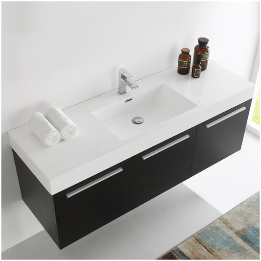 Vista 60" Black Wall Hung Single Sink Modern Bathroom Cabinet w/ Integrated Sink
