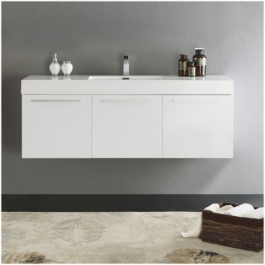 Vista 60" White Wall Hung Single Sink Modern Bathroom Cabinet w/ Integrated Sink