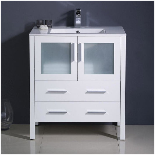 Fresca Torino 30" White Modern Bathroom Cabinet w/ Integrated Sink