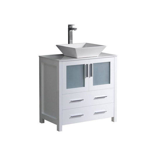 Fresca Torino 30" White Modern Bathroom Cabinet w/ Top & Vessel Sink