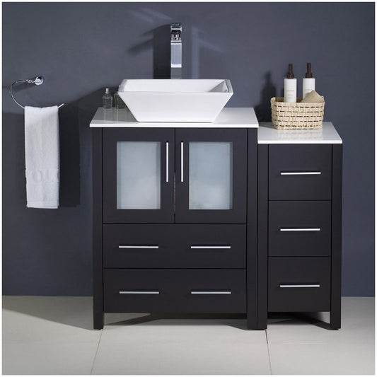 Fresca Torino 42" Espresso Modern Bathroom Cabinets w/ Top & Vessel Sink