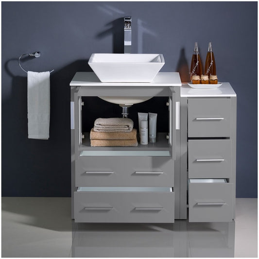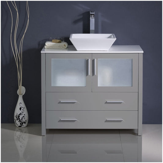 Fresca Torino 36" Gray Modern Bathroom Cabinets w/ Top & Vessel Sink