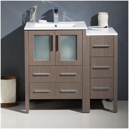 Fresca Torino 36" Gray Oak Modern Bathroom Cabinet w/ Integrated Sink