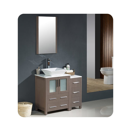 Fresca Torino 36" Gray Oak Modern Bathroom Cabinets w/ Top & Vessel Sink