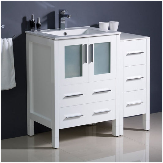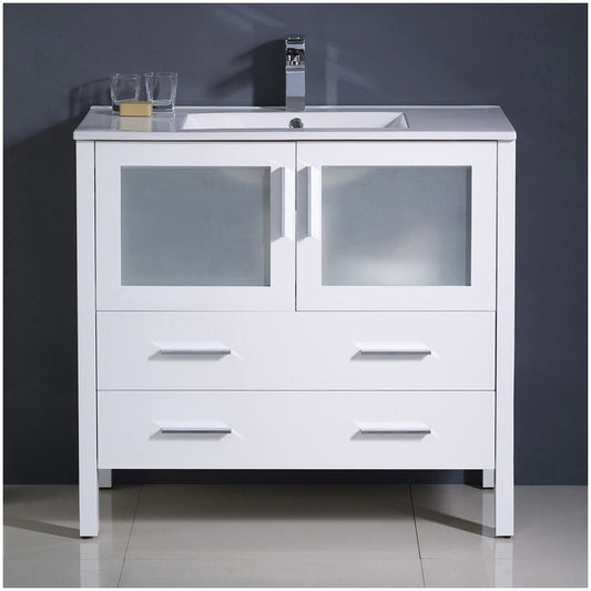 Fresca Torino 36" White Modern Bathroom Cabinet w/ Integrated Sink