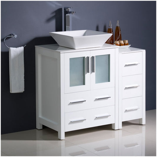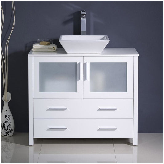 Fresca Torino 36" White Modern Bathroom Cabinets w/ Top & Vessel Sink