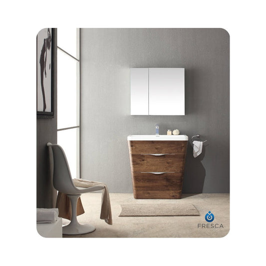 Fresca Milano 32" Rosewood Modern Bathroom Cabinet w/ Integrated Sink