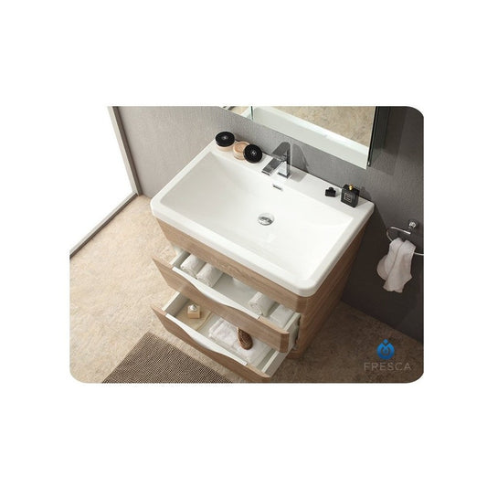 Fresca Milano 32" White Oak Modern Bathroom Cabinet w/ Integrated Sink